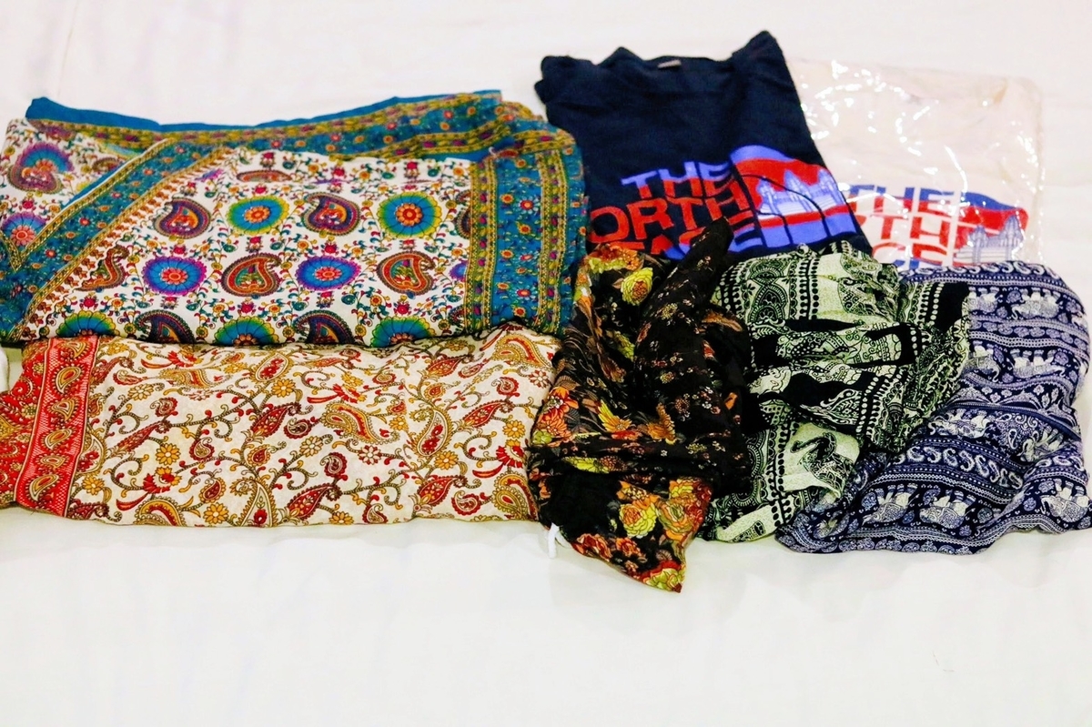 ワンピース2枚、Tシャツ3枚(1枚映っていないですがHariHaraのものも購入しています)、アリババパンツ3枚を購入しました。ワンピースは夏の部屋着にかわいいかな~♡♡旅行中も、シャワーの後にサラッと着れて丈も長いので1枚で出歩けるて便利!HariHaraのTシャツは日本で購入するTシャツと同じ位の値段(恐らく3,000円弱くらい?)で購入しました。さすがにしっかりした生地でした~っ笑